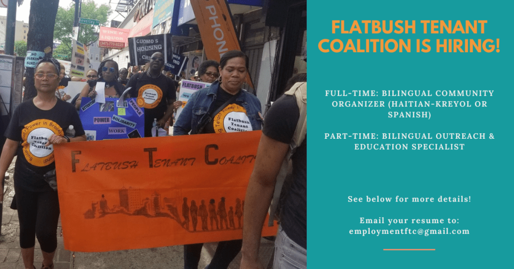 Who We Are: The Flatbush Tenant Coalition is a member-led group of more than 100 tenant associations and hundreds of tenant leaders, building tenant power in central and south Brooklyn. We develop skilled and informed tenant leaders to challenge the oppressive systems that disenfranchise low-to-moderate income tenants. Our tenant leaders work together to obtain much-needed repairs in our member buildings, stop harassment and displacement, and strengthen tenants’ rights in NYC and across the state.